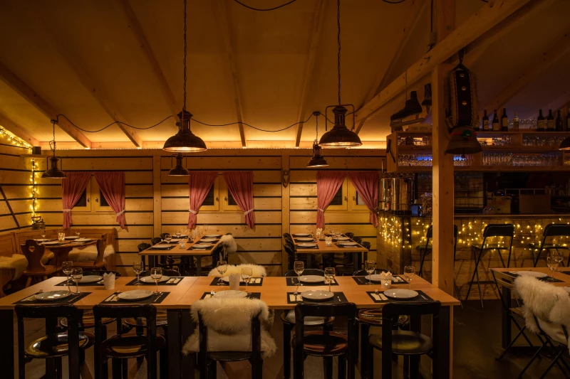 «Die Lerchenstube bietet Platz für rund 70 Personen. Im Tipi-Zelt kann ich nochmals einige Besucher:innen unterbringen. Das ganze Bredella Village ist aber vor allem outdoor ein echter Hingucker», erzählt Felix Bielser als Betreiber der Eventfläche. Als früherer Inhaber der «Sprisse» in Pratteln und Gründer der Ü-Partys, die sich vor allem in der Elisabethenkirche einen Namen gemacht haben, ist er zwar Quereinsteiger im Gastrobereich, aber mit Dienstleistungs-Gen für alle Ausgangslagen zu haben. Nach dem erfolgreichen Eventdorf im Rahmen des Eidgenössischen Schwing- und Älplerfest 2022 in Pratteln, betreibt er nun Bredella Village am Bahnhof Nord. «Die Ausgangslage in der Agglomerationsgemeinde ist neu und mit nichts zu vergleichen, das ich vorher gemacht habe. Das Ambiente jetzt im Winter erinnert aber an meine Zeit auf der Sissacherfluh. Auch dort habe ich Feuerschalen aufgestellt und für ein Hüttenfeeling gesorgt.»