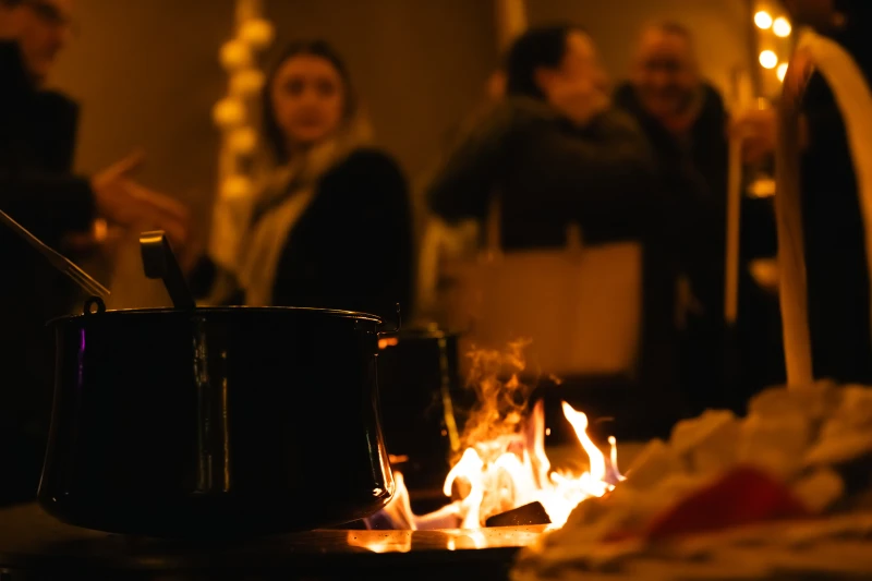 Feuerschale, Glühwein, Fondue und Raclette locken ins winterliche Bredella Village mit Tipi-Zelt, wie sie sonst nur in Skigebieten stehen.