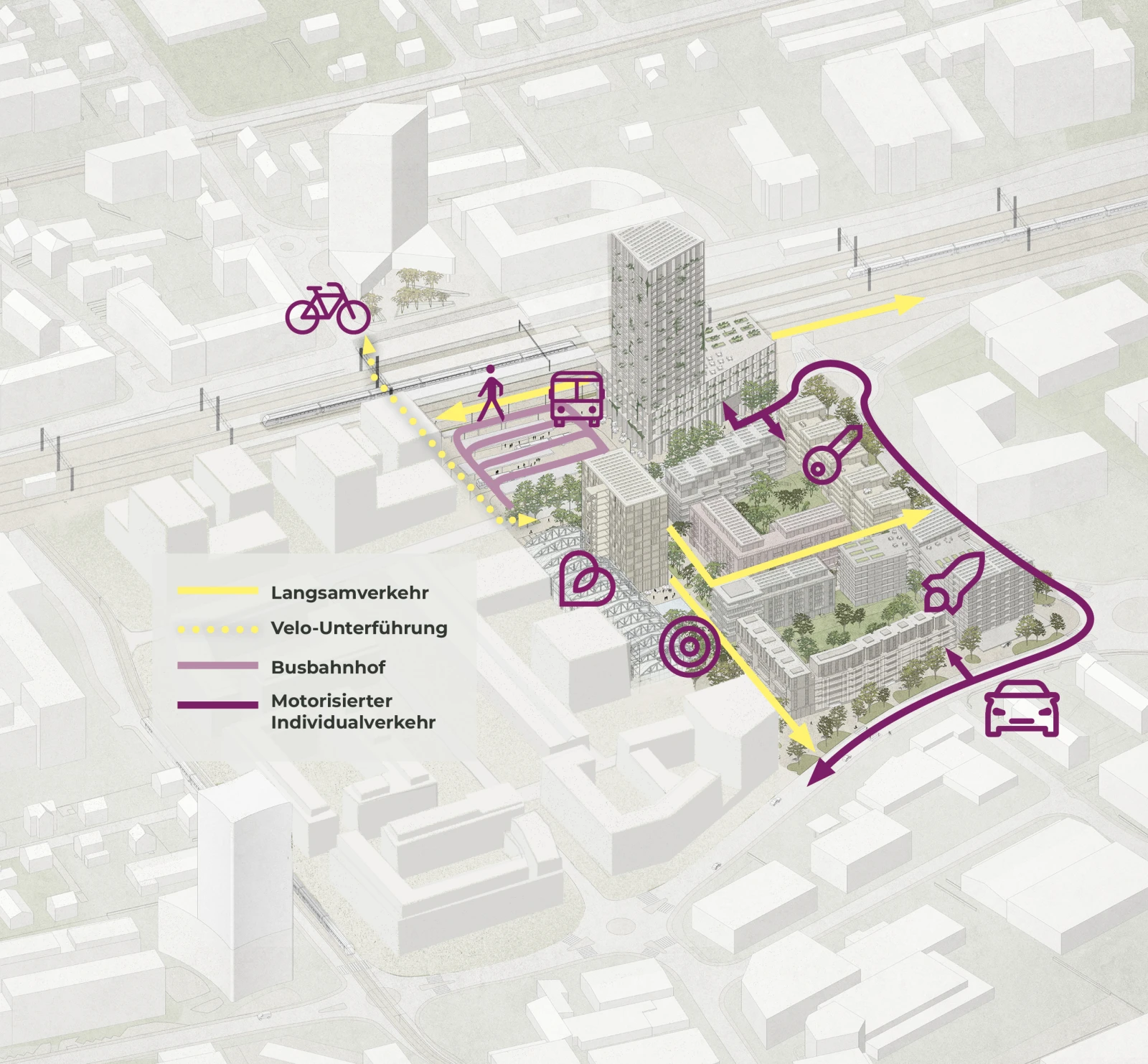 Auch die Verkehrsplanung funktioniert von Anfang an: Nur so kann der Quartierplan Bredella West schon vorgezogen werden. Mit dem Quartierplan Bredella Ost wird der Masterplan komplettiert. Die Verkehrsachse wird dann komplett übers Areal bis zum Gallenweg Richtung Zentrale führen.