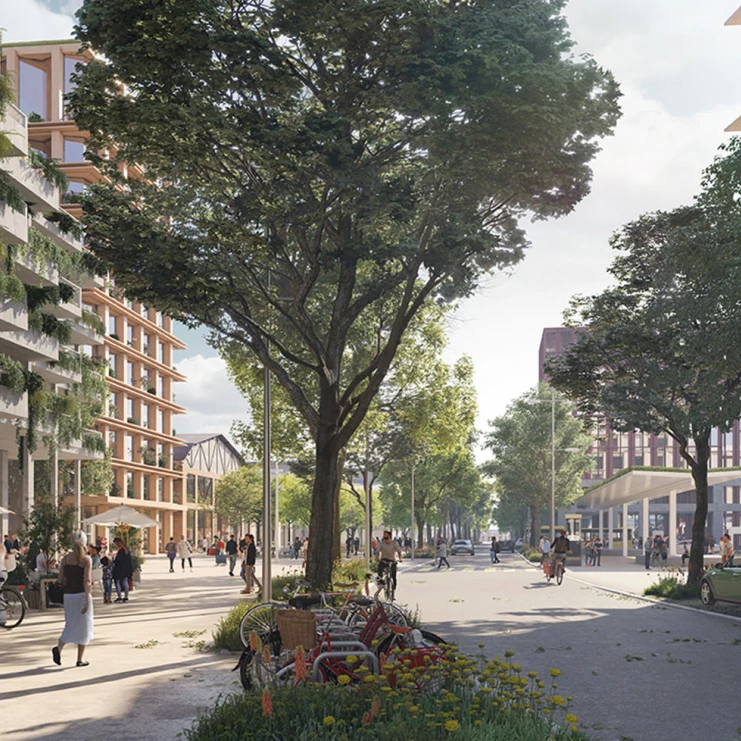 Auf dem ehemaligen Industrieareal entsteht ein lebendiges Quartier mit ersten Fussgängerzonen für Pratteln mit Läden und Gastronomiebetrieben.