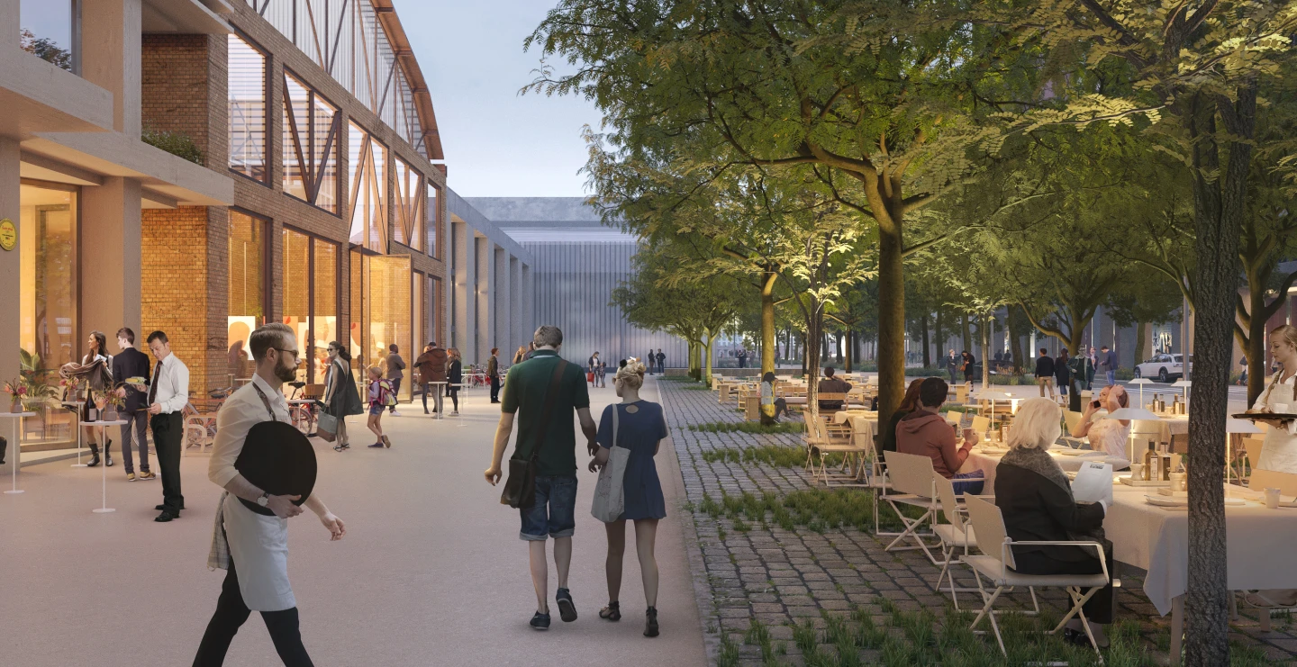 Die gesamte Arealentwicklung richtet sich nach dem Prinzip der 10-Minuten-Stadt, die kurze Wege ermöglicht und alles bietet, was für den Alltag nötig ist. Doch nicht nur das: Die öffentlichen Plätze, die bereits mit Bredella West umgesetzt werden, nehmen unterschiedliche Funktionen ein. Neben den halb-privaten Innenhöfen gibt es öffentliche Räume wie zum Beispiel der Vorplatz der neu gestalteten Industriehalle. Am Grüssenweg finden attraktive Erdgeschoss-Nutzungen ihren Platz. In der Quartierplan Bredella West sind unterschiedliche Baufelder geplant, die Platz für ein Hotel, für den Detailhandel, für nicht störendes Gewerbe, für Kulturnutzung, Spiel- und Sportnutzung sowie fürs Wohnen bieten.